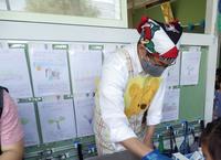当番は手袋を付けて、感染拡大防止のため無言で配膳し、