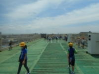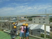 晴れた日は、校庭だけではなく屋上で活動したり、江戸袋公園まで散歩をしたりしています。