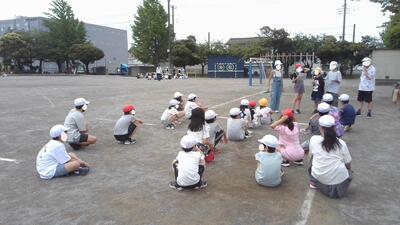 開会式の隊形や歌「ゴーゴーゴー」そして全校競技の大玉送りの練習が行われました。