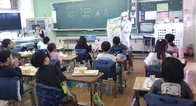 1,2年生の給食の配膳や食事の様子を見ていただきました。