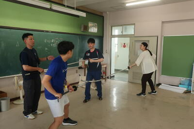 事前に教員向けの研修会を開き、武南警察の方にさすまたの使い方のご指導をいただきました。