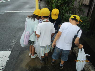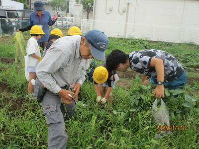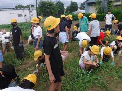 朝は雨が降っていましたが、3年生が出発する直前に雨が止みました。少々ぬかるんでいましたが、暑くなく抜きやすく、よい自然体験となりました。