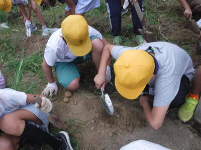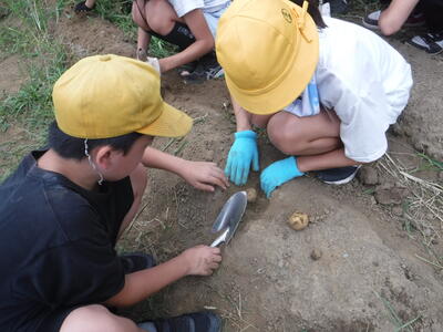 5年生の最後に植えたじゃがいもを収穫しました。